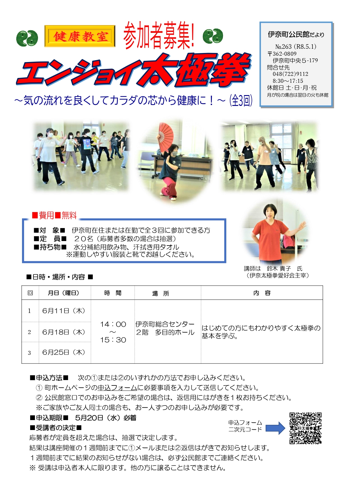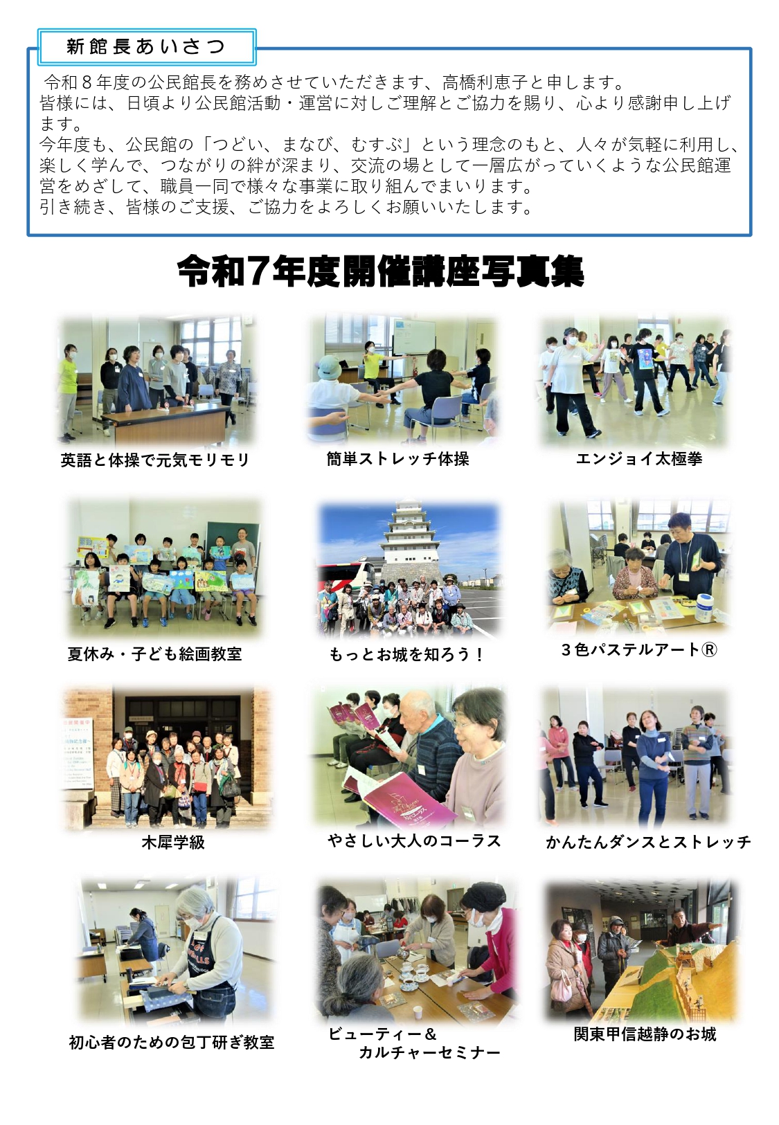 公民館だより令和8年5月号 〇参加者募集 「エンジョイ太極け拳」≪全3回≫ 〇令和7年度開催講座 写真集