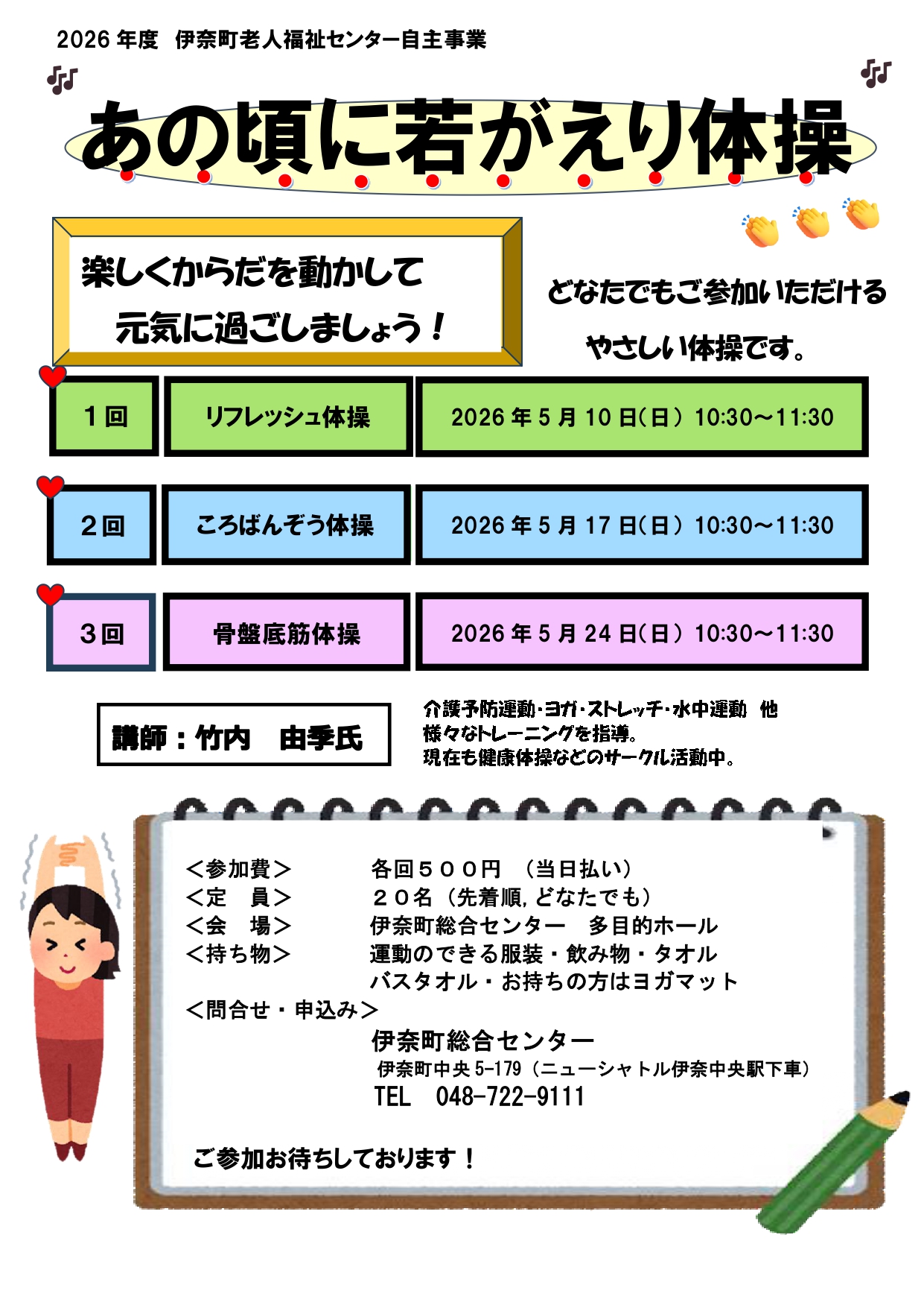 あの頃に若がえり体操 2026年5月10日(日)・17日(日)・24日(日)